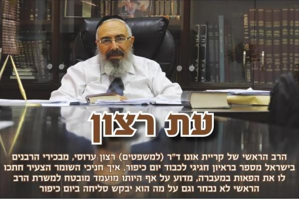 את הרב ד"ר רצון ערוסי (74), רבה הראשי של קריית אונו פגשתי לא פעם ולא פעמיים, באירועים רשמיים ופרטיים, ובכל הפעמים הללו התגלה לפניי אדם נעים הליכות, רטוריקן שמקפיד על כל תג בשפה אבל יותר מכל אדם שיודע להלך בין הטיפות, בין המגזרים השונים. תמיד נדמה כמי שארשת פניו אומרת יותר מאשר פיו. לקראת היום הקדוש בשנה פגשתי לשיחה את הרב שיש שאומרים שקריית אונו קטנה על מידותיו, ובכל זאת הוא איתנו פה כבר למעלה משלושים שנה. את הקסם של לדעת להלך בין הטיפות, לימדו אותו קורות חייו ששזורים בכל הרבדים של החברה הישראלית.