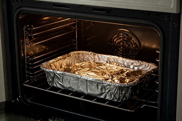 פסח שחל במוצ"ש - האם רשאים להניח בתנור מאכל חמץ לסעודה שניה באופן שהסיר עטוף כולו בנייר כסף?