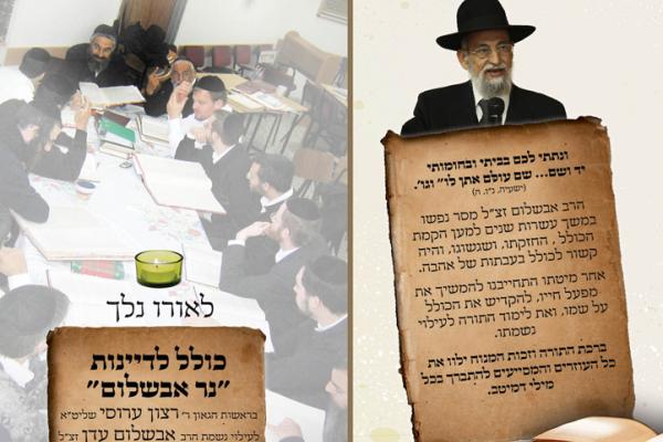 קריאת קודש לסיוע ותרומה לכולל לדיינות נר אבשלום ע"ש הרב אבשלום עדן ע"ה
