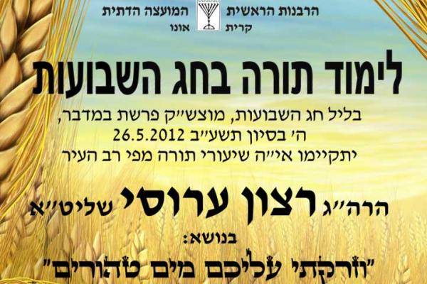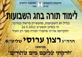 ליל שבועות שיעורי תורה מפי הרה"ג רצון ערוסי שליט"א